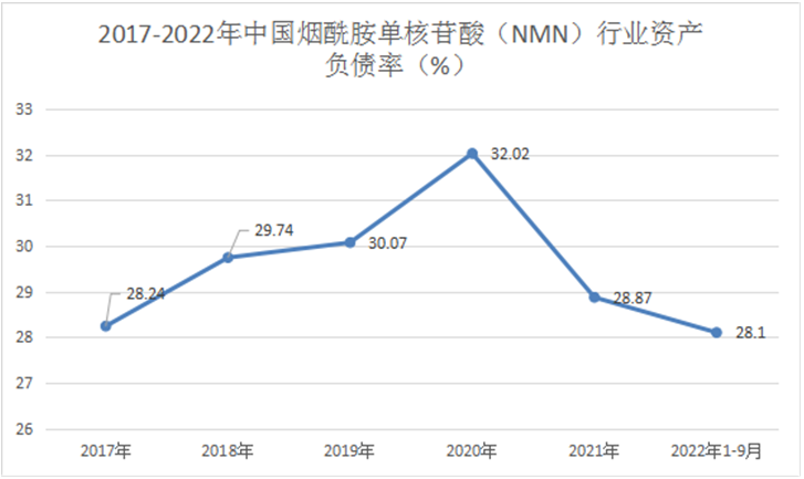 2017-2022年中國煙酰胺單核苷酸(NMN)行業(yè)資產(chǎn)負(fù)債率如下表所示: