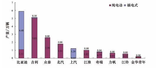 圖表 2015 年新能源乘用車(chē)產(chǎn)量前10 名企業(yè)