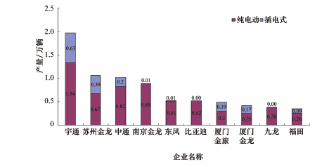 圖表 2015 年新能源客車(chē)產(chǎn)量前10 名企業(yè)