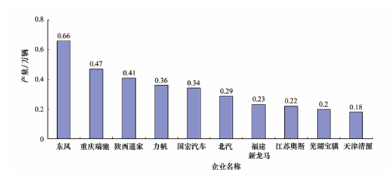 圖表 2015 年新能源專(zhuān)用車(chē)產(chǎn)量前10 名企業(yè)