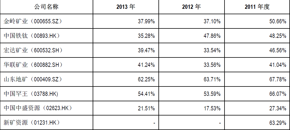國(guó)內(nèi)鐵礦石行業(yè)上市公司營(yíng)業(yè)毛利率比較