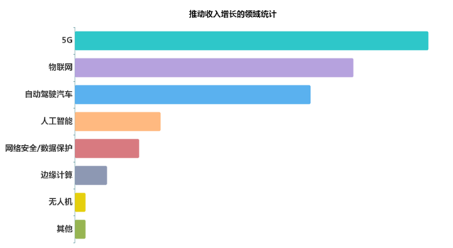 技術(shù)演變不僅為半導(dǎo)體行業(yè)生態(tài)系統(tǒng)增加了商機(jī),而且創(chuàng)造了新的收入來源,F(xiàn)今,技術(shù)融合有望推動(dòng)該行業(yè)發(fā)展至更高更廣的一個(gè)層面上。根據(jù)調(diào)查結(jié)果,半導(dǎo)體公司高管認(rèn)為,未來半導(dǎo)體收入增長(zhǎng)的最大希望在于無(wú)線通信(包括5G).物聯(lián)網(wǎng)和汽車應(yīng)用。隨著這些技術(shù)的發(fā)展,它們將匯聚成亟需先進(jìn)半導(dǎo)體產(chǎn)品的單一系統(tǒng)和設(shè)備。無(wú)線通信和物聯(lián)網(wǎng)并列為下一財(cái)年推動(dòng)收入增長(zhǎng)的最重要應(yīng)用,其次定汽車和人工智能。在去年的調(diào)查中,同樣的半導(dǎo)體產(chǎn)品應(yīng)用也占據(jù)了前四席;