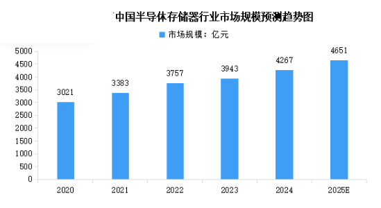 近年來,我國正通過自主技術(shù)逐步打破海外壟斷,國內(nèi)半導(dǎo)體存儲(chǔ)器市場(chǎng)規(guī)模穩(wěn)步增長。2024年中國半導(dǎo)體存儲(chǔ)器市場(chǎng)規(guī)模達(dá)到約4267億元,較上年增長8.22%。2025年中國半導(dǎo)體存儲(chǔ)器市場(chǎng)規(guī)模將達(dá)到4651億元。