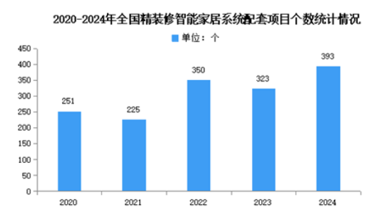 近年來,新建房屋和老房屋的改造升級的需求增多,以及物聯(lián)網(wǎng)、云計(jì)算、人工智能等技術(shù)的更新迭代,智能家居市場將快速發(fā)展。2024年中國精裝修市場配套智能家居系統(tǒng)項(xiàng)目393個,同比增長13.3%。