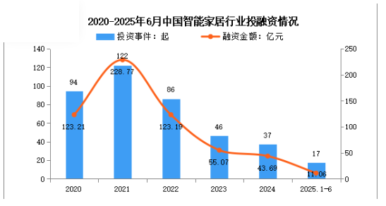 隨著5G技術(shù)和物聯(lián)網(wǎng)技術(shù)的發(fā)展,智能家居企業(yè)備受資本市場青睞。2025年上半年智能家居已披露投資事件共17起,已披露融資金額達(dá)11.06億元。