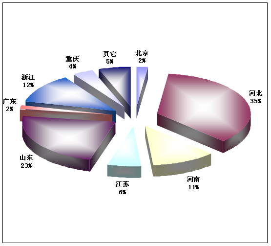 我國木糖醇主要區(qū)域銷售結(jié)構(gòu)分布比例
