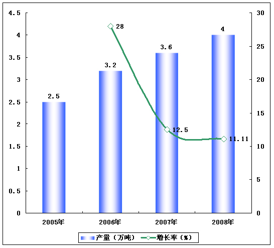 圖表:2008-2009年木糖醇產(chǎn)量分析及預(yù)測