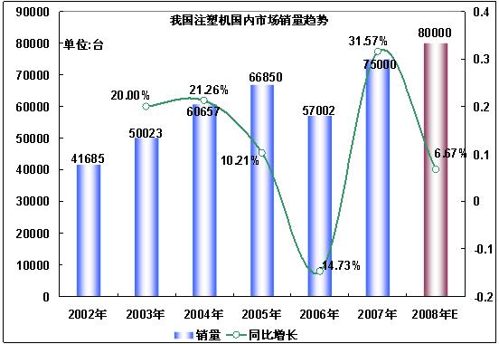 圖表 2 2002年~2008年我國注塑機國內(nèi)市場銷量趨勢圖