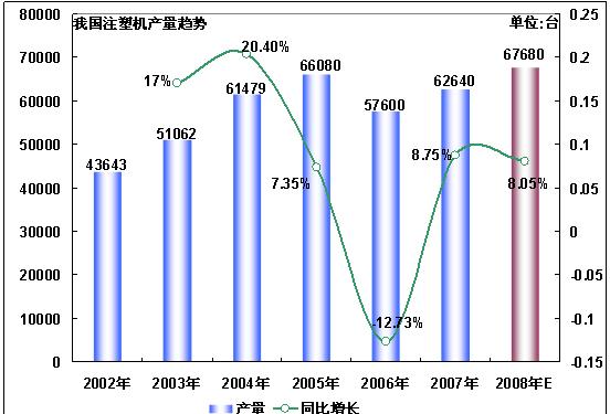 圖表 1 2002年~2008年我國注塑機產(chǎn)量趨勢圖